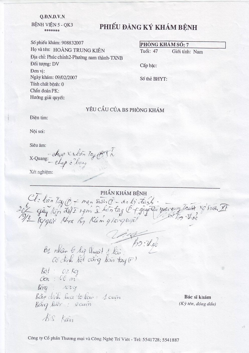 B́nh khám xét xác lập khi anh vào đây cấp cứu. Cho đến