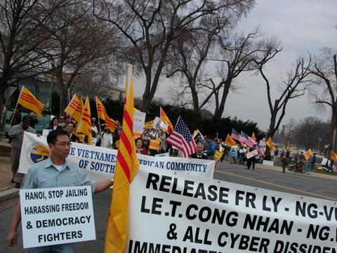 Hoa Thịnh Đốn. - Để phản đối nhà cầm quyền CSVN đă đàn áp dă man, bắt bớ những nhà tranh đấu cho tự do, dân chủ, nhân quyền  ở Việt Nam như  Linh Mục Nguyễn Văn Lư, Luật sư Nguyễn Văn Đài,  Luật sư Lê thị Công Nhân nhà báo Đặng Vũ B́nh… nhân chuyến viếng thăm của Phó Thủ Tuớng kiêm Bộ Trưởng Bộ Ngoại Giao CSVN Phạm Gia Khiêm ở HTĐ, để vận động cho CSVN, Cộng Đồng VN vùng Hoa Thịnh Đốn, MD &VA  đă  tổ chức một cuộc biểu t́nh vô cùng quy mô trước tiền đ́nh Quốc Hội HK và trước Bộ Ngoại Giao HK ở Washington, D.C.  vào lúc 11 giờ sáng ngày 15 Tháng 3, 2007.
