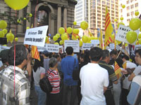 Điểm rơ nét đầu tiên của chúng tôi là cuộc biểu t́nh đă diễn ra trong khí thế sôi sục suốt hơn 4 giờ dù vẫn giữ được thái độ ôn ḥa và tôn trọng luật pháp. Nhiều người đi xem DDVN, cả Úc lẫn Việt, được trao những tài liệu và bằng chứng tố cáo tội ác của chế độ CSVN trong 60 năm cầm quyền. Không một sự kiện đáng tiếc nào đă xảy ra và một số người - có thể v́ cảm thấy không thoải mái hoặc đă nh́n rơ ư đồ tuyên truyền của Hà Nội - đă xé vé ra về trong tiếng vỗ tay hoan hô của đoàn biểu t́nh. Điểm đáng ghi nhận khác: trong khi những người đến xem hát (đại đa số là du sinh từ Việt Nam được Ṭa đại sứ CSVN lên danh sách và phát vé miễn phí) cúi đầu xếp hàng trong thái độ miễn cưỡng trong ṿng bảo vệ của cảnh sát, đoàn biểu t́nh đă nhiệt thành mời họ hăy can đảm xin tỵ nạn ở Úc để được sống trong nhân phẩm và tự do đích thực. Trong rừng cờ Úc - Việt và những chiếc bong bóng vàng in ba sọc đỏ với những khẩu hiệu đấu tranh cho dân chủ và nhân quyền, những bản hùng ca và t́nh tự quê hương đă được phát thanh liên tục vang dậy góc phố tấp nập nhất của Sydney, tạo sự chú ư cho hàng chục ngàn người Úc dạo phố đêm. Trên các bậc thang có trải thảm đỏ dẫn đến lối vào hội trường cách xa khoảng 10 mét từ đoàn biểu t́nh, những khuôn mặt đăm đăm tức giận của các cán bộ CSVN càng làm tăng thêm sự thất bại thăm hại của buổi diễn.