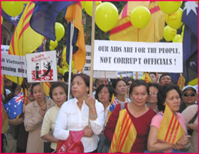 Một vài việc vừa diễn ra theo lời yêu cầu của Hà Nội đang gây một sự phẫn khích cao độ. Theo yêu cầu của Hà Nội, Nam Dương và Mă lai đă phá hủy các tấm bia tưởng niệm thuyền nhân v́ Hà Nội không muốn bị nhắc nhở rằng những người đă thực sự ra đi khỏi đất nước đó để trốn khỏi thái độ khủng bố và độc tài của chế độ. Việt Nam cũng có vấn đề tham nhũng. Năm ngoái, tổ chức Minh bạch Quốc tế đă xếp Việt Nam vào hạng 102 trên thế giới.