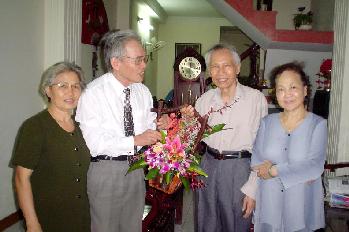 Cụ Chính và Phương Nam Đỗ Nam Hải Sắp đến giờ ăn trưa, hai ông bà giáo sư Trần Khuê cũng đến đă tặng cụ một lẵng hoa để mừng sinh nhật cụ và mừng cụ trở về nước.