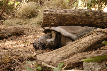 I feel a lot better but Owen does not look well. Today he slept all day long, always beside his new adopted mother, Mzee. I have been watching Mzee, he still does not seem to share Owens affections and everytime anyone comes into the Kaya (a sacred place in the Haller Park where we plant rare and endangered plants) Mzee seems to make a mad, but slow, tortoise dash for the gate. I have to ask myself if Mzee is trying to escape from Owen? Owen is such a small baby, he needs a companion and Mzee is just about the same size as Owen. To Owen Mzee must be the next best thing to a real mother, he's almost the right colour and shape, I don't think he cares that Mzee is a reptile. I really hope they will still be together in the morning.