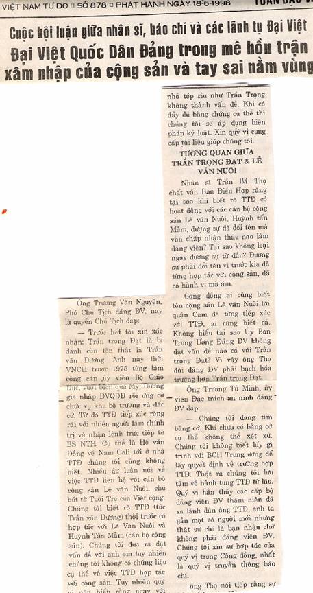 Ngày 20 tháng 07 năm 2002, ĐVQDĐ ra một Thông Báo đăng trên báo Người Việt các báoHoa Kỳ nhằm thông báo trước công luận ông Trần Trọng Đạt, tức Trần Văn Dương, đă bị khai trừ khỏi Đại Việt Quốc Dân Đảng.