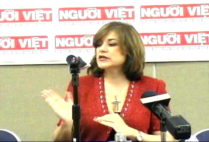 Bà nói: “Từ trước tới nay, Ngoại Trưởng Condoleezza Rice chưa bao giờ đề cập đến Việt Nam. Vậy mà mới đây Bộ Ngoại Giao của bà phải lên tiếng ‘đáng lo ngại’ về hành động mới đây (ngăn cản không cho người thân của một số nhà bất đồng chính kiến Việt Nam gặp bà) của chính quyền Việt Nam. Và bà cũng đă yêu cầu một phụ tá của ḿnh đến Việt Nam để xem xét t́nh h́nh, mà cụ thể là thăm Ḥa Thượng Thích Quảng Độ.”