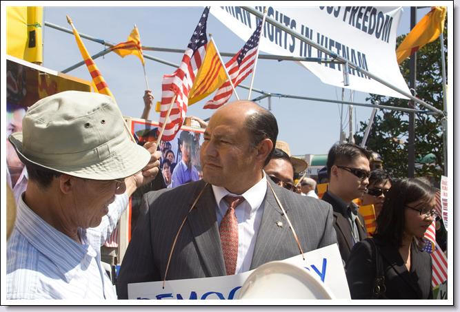Cuộc biểu t́nh do Ủy Ban Phối Hợp Tranh Đấu Cho Tự Do, Nhân Quyền Và Dân Chủ Việt Nam tổ chức ngay tại thủ đô tỵ nạn vào sáng ngày hôm nay, Chủ Nhật 1 tháng 4/2007, để phản đối Cộng sản Việt Nam xử án Linh mục Nguyễn Văn Lư, đàp áp các nhà dân chủ trong nước, đă thành công tốt đẹp trong rừng cờ, khí thế, với sự tham dự đông đảo của các vị đồng hương, quan khách Hoa Kỳ, truyền thông báo chí. Các em nhỏ tham dự biểu t́nh đă rất hăng say. Xe đi đường, theo lời mời gọi của người biểu t́nh, cũng bóp kèn inh ỏi để biểu đồng t́nh.