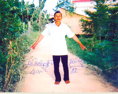 Ông Phạm văn Nương đang giang 2 tay chỉ