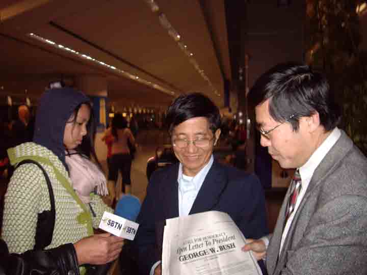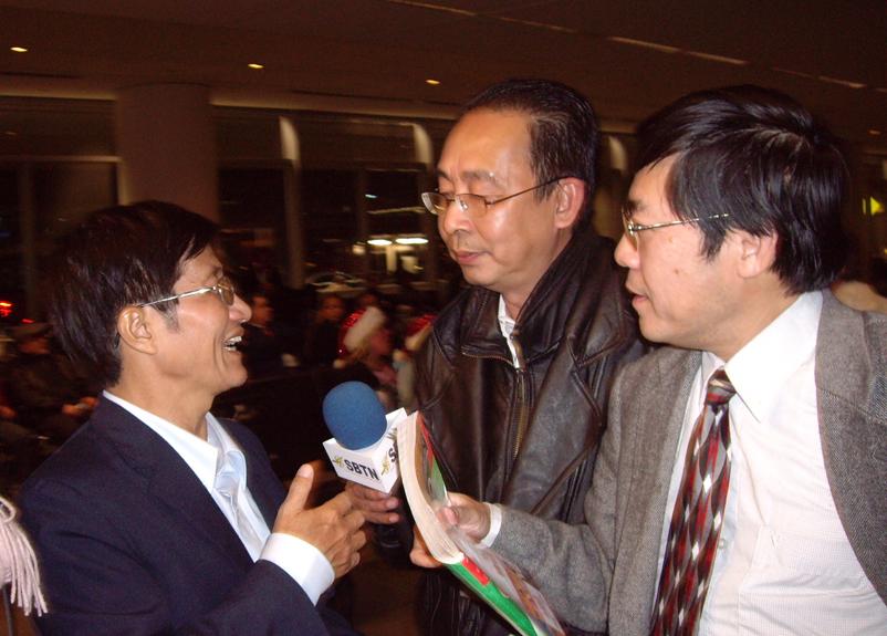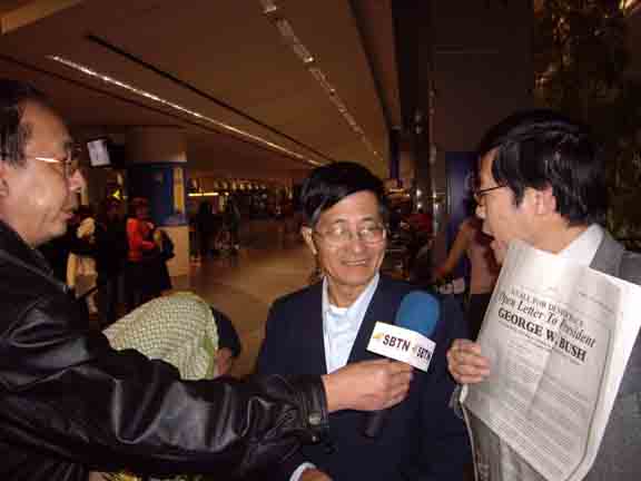 Giáo Sư Nguyễn Chính Kết đă hơi bất ngờ v́ được một số đồng hương đi đón, ông đă nhỏ nhẹ ngỏ lời cảm ơn Mạng Lưới Nhân Quyền cũng như mọi người đă ra phi trường đón ông.