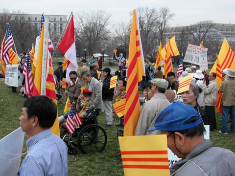 Mặc dầu cuộc biểu t́nh được tổ chức vào ngày Thứ Năm, nhưng nhiều người đă xin nghĩ việc để tham dự, cũng như có nhiều phái đoàn ở xa về, có khoảng vài trăm đồng bào đă tập hợp trước Quốc Hội HK lúc 11 giờ sáng để biểu t́nh.  Trong đó có nhiều phái đoàn ở xa như Pháp, Canada , Âu Châu, Georgia, North Carolina, New York, New Jersey, Philadelhia , PA; Boston, MA…cùng sự  hiện diện của hầu hết các đảng phái chính trị VN như Việt Nam Quốc Dân Đảng, Liên Minh Dân Chủ, Cao Trào Nhân bản, Tập Thể Chiến Sĩ Quốc Gia, Việt Tân… đặc biệt là trong cuộc biểu t́nh có rất nhiều người già như Luật Sư Trần Thanh Hiệp trên 80 tuổi đến từ Pháp, Ông Dương Văn Anh cũng trên 80 tuổi đến từ Toronto ,Canada; Cụ Phan Vỹ,   VA cũng trên 80 tuổi , có người ngồi xe lăn mặc quân phục cựu quân nhân VNCH hay đội mũ mang màu cờ VNCH cùng biểu t́nh.