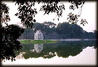tấm h́nh gửi theo là h́nh hồ Gươm với Tháp Rùa ở Hà Nội, nơi tôi theo học ở bậc