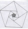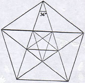 ngũ giác đều thì ta sẽ được một ngôi sao năm cánh đều. Những đường chéo hợp với những cạnh của hình ngũ giác thành những tam giác cân, có góc ở đỉnh là 36o và hai góc bằng nhau ở đáy mỗi góc là 72o, tức là bằng hai lần góc ở đỉnh. Ở phía trong hình ngôi sao lại hiện ra một hình ngũ giác đều và hình này lại sinh ra một hình ngôi sao 5 cánh đều thứ hai và cứ thế tiếp tục đi vô tận.