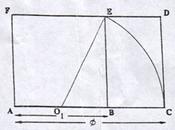 /2 . Nếu như thế thì khi vẽ chon trọn hình chữ nhật ACDF thì hình này có chiều dài là AC = Φ, và chiều ngang là AF = 1. Tỷ số hai chiều là số Φ, và hình chữ nhật là hình chữ nhật vàng.