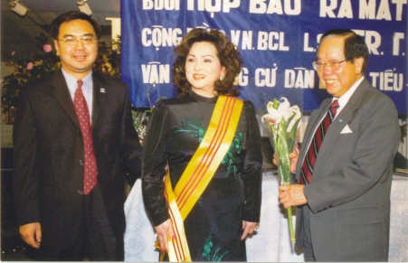 Chính v́ vậy, nay chúng ta có thể tự hào mà nói rằng, cả hai thế hệ, những người Việt Nam đi tiên phong trong cuộc di cư sang nước người, và thế hệ thứ hai, con em của chúng ta, đều đă có những đóng góp xứng đáng vào đất nước trú ngụ và được quần chúng Hoa Kỳ lưu ư tới và tỏ ḷng tín nhiệm. Cùng với thiên niên kỷ mới, cộng đồng người Việt đă bước sang giai đoạn mới, và chuyển hướng hành động. Người Việt di cư, nay đă là công dân Hoa Kỳ, chúng ta sẽ hoạt động để trở thành những người đại diện, không phải chỉ cho riêng cộng đồng người Việt mà thôi, mà là đại diện của chung mọi người khi được dân chúng tín nhiệm qua các cuộc bầu phiếu. Trong những người trẻ đi tiên phong trong giai đoạn này, hôm nay chúng ta có hạnh ngộ được tiếp đón ba bạn trẻ Việt Nam, những người đă gây được sự tính nhiệm của dân chúng Hoa Kỳ ở địa phương các anh cư ngụ, để được đắc cử vào những chức vụ đại diện. Tôi xin được khen ngợi và chúc mừng ba vị khách quư là: Luật sư Nguyễn Quốc Lân, Ủy viên Hôi đồng Giáo dục Học khu Garden Grove, California; Cử nhân Andy Quách, Nghị viên Thành phố Westminster, California; Luật sư Trần Thái Vân, Nghị viên Thành phố Garden Grove, California, và là ứng cử viên Dân biểu Tiểu bang California năm 2004.
