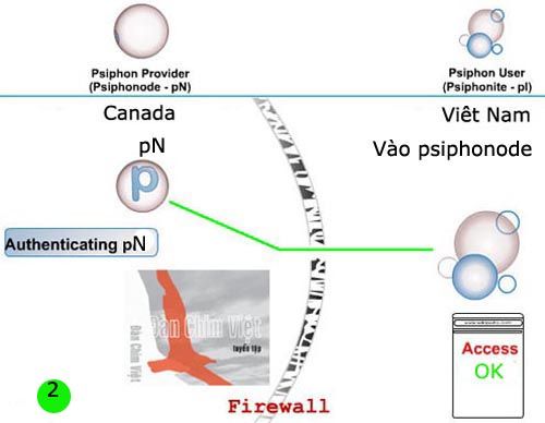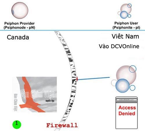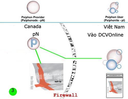 Từ 1 psiphonode (ở Canada hay 1 nước tự do khác) vào Đàn Chim Việt truyền về Việt Nam: xuyên tường lửa!