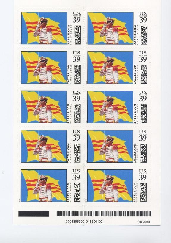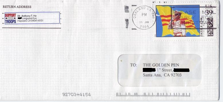 Trinh Tiết đã gửi tặng tôi 10 con tem cờ vàng trong cái bì thư dán tem cờ vàng do