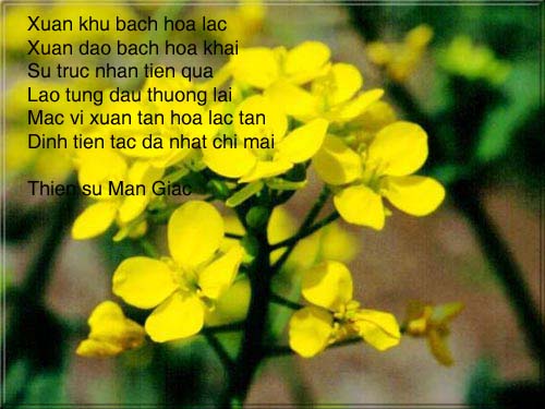 Thiền sư th́ thấy rất rơ: h́nh ảnh nhánh mai vàng rạng rỡ trước sân của thời điểm xuân tàn.