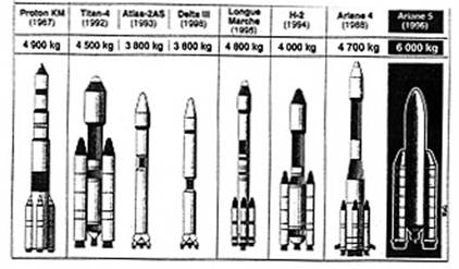 Hỏa tiễn Ariane 5 trên thực tế là một công tŕnh của Pháp, nhưng theo chính danh th́ hoả tiễn lớn nhất thế giới này là kết quả cuả một sự hợp tác giữa những nước Âu châu chung góp thành European Space Agency, viết tắt là ESA để có thể đứng ngang hàng với NASA của Hoa Kỳ. Trên thế giới hiện nay có 5 nước có hoả tiễn đủ mạnh để phóng những vệ tinh truyền tin vào vị thế bất di động đối với trái đất. Đó là những nước Hoa Kỳ, Nga, Pháp, Trung Hoa và Nhật Bản.