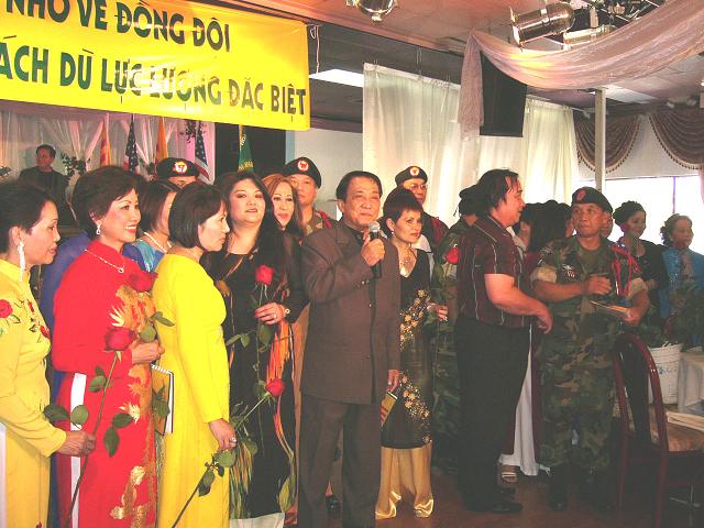 Chủ đề của cuộc gặp gỡ năm nay được ghi đậm trên sân khấu “Nhớ Về Đồng Đội”. Quả thật, có ở trong quân ngũ và từng bên nhau trên chiến hào, từng chia từng ngụm nước vũng trâu, từng qua những đêm nằm kích, từng lặn lội nơi biên giới tam biên... và nhất là đă cùng nhau gian nan bị đầy ải nhưng vẫn vững được ḷng tin qua những năm tù cải tạo của Cộng Sản, mới thấu được nỗi niềm “Nhớ Về Đồng Đội” của người lính Quân Lực Việt Nam Cộng Ḥa khi mà cuộc sống tị nạn đă tương đối được ổn định. Bây giờ th́ ai c̣n ai mất, những ngày tháng hoa niên tuổi trẻ đầy mộng mơ hy vọng đem đốt cháy trong chiến cuộc chặn ngăn làn sóng Cộng Sản quốc tế qua cuộc xâm lược của Cộng Sản Bắc Việt đang sống lại trong những câu chuyện hàn huyên. Người lính Biệt Cách Dù của Quân Lực Việt Nam Cộng Ḥa một thời tạo danh trong sử sách, nay vẫn c̣n đầy nhiệt huyết để giáo dục lớp con em ḷng yêu nước nhiệt thành.