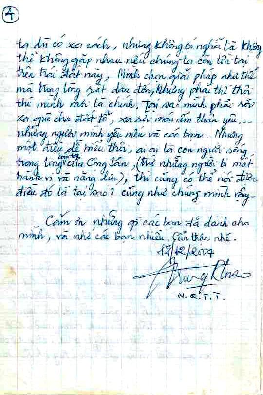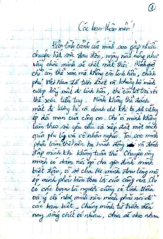 là lá thư Trung Tuấn viết ở nhà (Phan Thiết) và lén gửi cho bạn bè để tâm