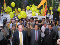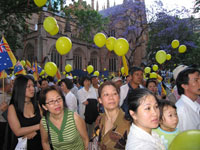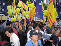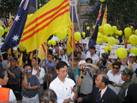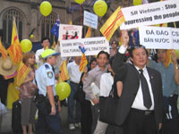 Điểm rơ nét đầu tiên của chúng tôi là cuộc biểu t́nh đă diễn ra trong khí thế sôi sục suốt hơn 4 giờ dù vẫn giữ được thái độ ôn ḥa và tôn trọng luật pháp. Nhiều người đi xem DDVN, cả Úc lẫn Việt, được trao những tài liệu và bằng chứng tố cáo tội ác của chế độ CSVN trong 60 năm cầm quyền. Không một sự kiện đáng tiếc nào đă xảy ra và một số người - có thể v́ cảm thấy không thoải mái hoặc đă nh́n rơ ư đồ tuyên truyền của Hà Nội - đă xé vé ra về trong tiếng vỗ tay hoan hô của đoàn biểu t́nh. Điểm đáng ghi nhận khác: trong khi những người đến xem hát (đại đa số là du sinh từ Việt Nam được Ṭa đại sứ CSVN lên danh sách và phát vé miễn phí) cúi đầu xếp hàng trong thái độ miễn cưỡng trong ṿng bảo vệ của cảnh sát, đoàn biểu t́nh đă nhiệt thành mời họ hăy can đảm xin tỵ nạn ở Úc để được sống trong nhân phẩm và tự do đích thực. Trong rừng cờ Úc - Việt và những chiếc bong bóng vàng in ba sọc đỏ với những khẩu hiệu đấu tranh cho dân chủ và nhân quyền, những bản hùng ca và t́nh tự quê hương đă được phát thanh liên tục vang dậy góc phố tấp nập nhất của Sydney, tạo sự chú ư cho hàng chục ngàn người Úc dạo phố đêm. Trên các bậc thang có trải thảm đỏ dẫn đến lối vào hội trường cách xa khoảng 10 mét từ đoàn biểu t́nh, những khuôn mặt đăm đăm tức giận của các cán bộ CSVN càng làm tăng thêm sự thất bại thăm hại của buổi diễn.