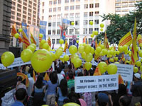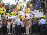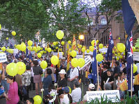 Mới từ 5 giờ chiều, hàng ngàn người đă đổ về Sydney Town Hal trước khi Ban tổ chức kịp hoàn tất các tấm phông lớn và hệ thống âm thanh. Sự hưởng ứng nồng nhiệt với lời kêu gọi của các Ban chấp hành NVTD trên toàn quốc của đồng hương đă làm bất ngờ cho cả lực lượng hàng trăm cảnh sát được huy động đến nơi để duy tŕ trật tự chung trong khu vực. Họ đă phải tăng cường thêm nhân sự và phương tiện để bảo vệ an ninh tại hiện trường. Những chuyến xe lửa tới tấp từ Cabramatta, Fairfield, Bankstown, Lidcombe, Marrickville... đă liên tiếp đổ xuống ḍng thác người đến địa điểm biểu t́nh suốt nhiều giờ. Con số hành khách gia tăng đột ngột đó đă khiến cho nhiều người Úc b́nh thường trên những chuyến xe này ṭ ṃ t́m hiểu và một số lớn đă bày tỏ sự ủng hộ của họ khi được biết mục tiêu đấu tranh của cộng đồng ngựi Việt ở Úc.
