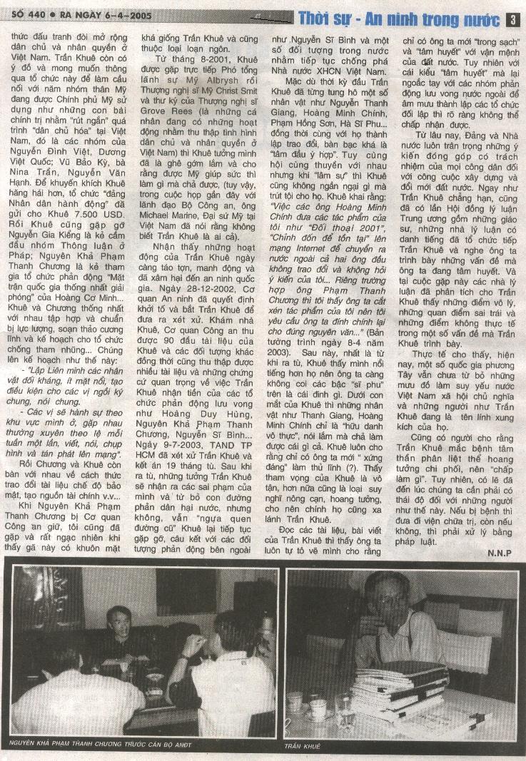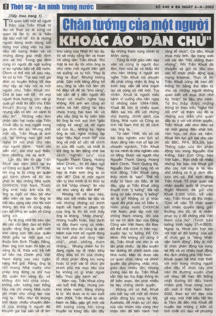 Báo An Ninh Thế Giới Bôi Bác ông Trần Khuê