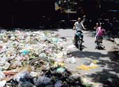 Kết quả là hàng ngh́n mét khối rác tiếp tục nằm lại các đường phố Hải Pḥng gây nên cảnh ô nhiễm, hôi thối chưa từng thấy, sau đây là h́nh ảnh mà PV Thanhnien Oline vừa ghi lại lúc 14 giờ trưa nay 9/8 tại TP cảng.