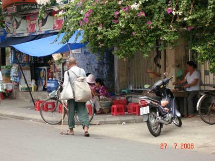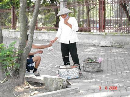 Ảnh 31: H́nh ảnh trái ngược với h́nh ảnh trên, một người dân nghèo khổ đang ngồi bán hàng rong trên vỉa hè đường phố thủ đô Hà nội của nước CHXHCN VN!!!