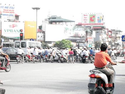 Ảnh 21:  Quang cảnh giao thông tại thủ đô Hà nội, nước CHXHCN VN, người dân đi lại chủ yếu bằng xe gắn máy hai bánh và họ chạy xe th́ không có luật lệ giao thông ǵ cả, mạnh ai người ấy đi đường của riêng họ. Giao thông ở nước CHXHCN VN th́ vô cùng lộn xộn!