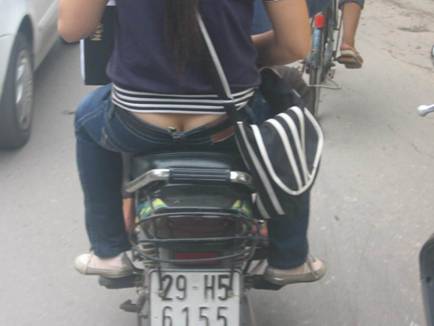 Ảnh 33: Ảnh 34: Ảnh 35: Một thiếu nữ ăn mặc hở hang trên đường phố thủ đô Hà nội của nước CHXHCN VN! Giới thanh niên trẻ VN được đào tạo dưới mái trường XHCN của nhà nước CSVN coi đây là MỐT và đua nhau ăn mặc quần JEAN cạp trễ như vậy để khoe hàng!!! Không biết là bên trong c̣n mặc ǵ nữa không???
