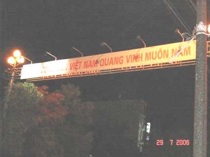 Ảnh 37: Khẩu hiệu của Đảng CSVN treo đỏ ḷm trên các đường phố của nước CHXHCN VN, không hiểu là "muôn năm" đến bao giờ nhỉ??? Ai có câu trả lời chính xác??? Không biết Nhân dân Việt nam có muốn Đảng CSVN "muôn năm" măi như thế không nhỉ? Liệu Nhân dân VN có muốn tên "đầy tớ trung thành phục vụ Nhân dân" này cưỡi lên đầu, trèo lên cổ, đè đầu cưỡi cổ Nhân dân măi không nhỉ???