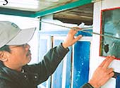 của ông đang thu mẻ lưới đầu tiên sau một ngày đánh bắt tại