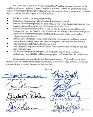 thư này mang chữ kư của 43 vị dân cử, vừa được phổ biến ngày 6-6-2005 và