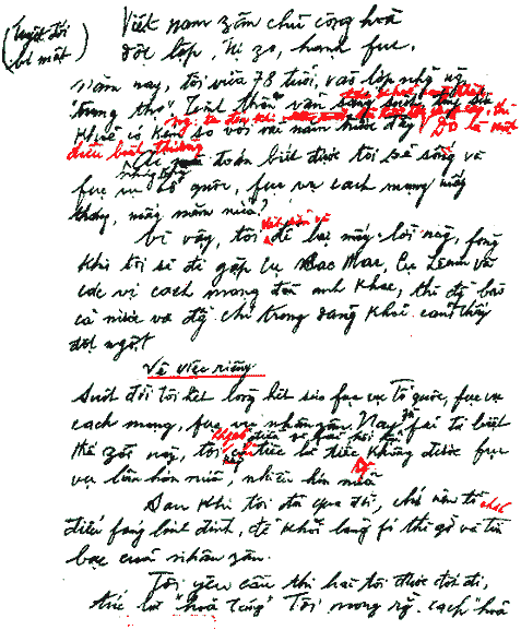 BẢN VIẾT TAY, DI CHÚC THẬT CỦA HỒ CHÍ MINH trước khi chết 1969
