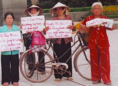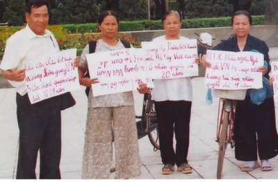 Trong các ngày 18 đến 20 tháng 5 năm 2006 lẻ tẻ các tốp biểu t́nh của nông dân bị mất đất đai do mở đường, hoặc do các quan chức CSVN ở địa phương cướp phá và đền bù không thoả đáng. Họ kéo rất đông về thủ đô Hà nội tụ tập quanh khu vực Vườn Hoa Mai Xuân Thưởng, khu vực lăng Hồ Chí Minh nơi Quốc hội đang họp. Họ căng biểu ngữ, cờ quạt băng rôn, khẩu hiệu trước ngực, cả ảnh chân dung CT Hồ Chí Minh, họ diễu hành trên các đường Hoàng Diệu, Phan Đ́nh Phùng, và đầu phố Hoàng Hoa Thám nơi có đặt trụ sở văn pḥng phủ Thủ tướng CSVN. Đoàn biểu t́nh của nhân dân các tỉnh đă làm náo loạn cả một khu vực đầu năo rất nhạy cảm của ĐCSVN. Nên Bộ công an VN đă chỉ đạo công an đồn phường Thuỵ Khuê, quận Ba Đ́nh, Hà nội phối hợp với công an thành phố Hà nội và nhiều lực lượng an ninh ch́m nổi khác được điều xuống khu vực này để văn hồi “trật tự” và giải tán các cuộc biểu t́nh của dân chúng nay. Công an VN đă tiến hành bắt bớ nhiều người dân đi khiếu kiện, biểu t́nh đă có thâm niên rất nhiều năm ở số 1 Mai Xuân Thưởng. Họ đă bắt 2 người dân đi biểu t́nh quê ở Hải pḥng, buộc 2 người này phải trở về ngay thành phố Hải pḥng và cấm không được quay trở lại khiếu kiện ở Hà nội. Công an Bộ và phường Thuỵ Khuê đă bắt 2 bà là Nguyễn Thị Gấm ở Quảng Ninh và Nguyễn Thị Châu quê ở B́nh Phước giam vào đồn công an phường suốt 1 ngày. Tại Vườn Hoa Mai Xuân Thưởng công an VN được cấp trên giao nhiệm vụ trấn áp những người biểu t́nh này nên đă ngang nhiên xé quần áo của 2 bà này do 2 bà đă tự vẽ, viết các khẩu hiệu ngay trên áo của ḿnh. Nội dung những khẩu hiệu đó là: “Dân oan VN đ̣i Nhà nước và Chính phủ phải giải quyết sớm để cho chúng tôi trở về quê”. Nhiều khẩu hiệu có nội dung cụ thể họ đă tố cáo bị trù dập và đàn áp, việc giải quyết hồ sơ oan khiên của họ không được thấu t́nh đạt lư như: “Tôi Nguyễn Thị Châu ở B́nh Phước bị mất nhân quyền 2 năm”, “Tôi Nguyễn Thị Gấm ở Quảng Ninh bị mất nhân quyền 6 năm”, một khẩu hiệu khác viết: “Tôi Nguyễn thị Luyện đ̣i trả tự do cho con trai tôi bị tù oan 5 năm”…c̣n rất nhiều hàng chục các khẩu hiệu khác của dân oan ở miền Trung, miền Nam xa xôi. Mấy hôm trước những người dân biểu t́nh đă giơ những khẩu như vậy khi tham gia biểu t́nh trước trụ sở tiếp dân của ĐCSVN và Nhà nước VN th́ đều bị các lực lượng công an, cảnh sát giật khỏi tay rồi xé bỏ, dùng giầy dẫm đạp, di các biểu ngữ, khẩu hiệu đó xuống đất rất bỉ ổi. Nên mấy hôm sau, khi biểu t́nh người dân đă có sáng kiến là sơn vẽ thẳng vào quần áo đang mặc nhưng cuối cùng th́ công an VN không ngại ngùng để xé bỏ quần áo của cả những người phụ nữ như các bà Châu, bà Gấm nói ở trên!