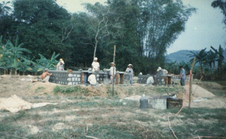 Xây mộ cho người chết trong tù (những người tù đang xây, do công an được thuê mướn và bắt tù làm việc)