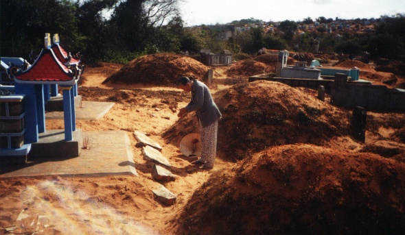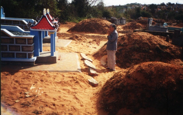 Việt cộng ức hiếp lương dân Nguyễn Quốc Trung Tuấn trong những ngày mới sang Cambodia (tháng 7 năm 2003) đã gửi cho Bút Vàng một số hình ảnh nói lên sự áp bức của Việt cộng đối với lương dân Phan Thiết như dưới đây . Hình chụp trong trại tù . Những người lương dân bị VC giựt nhà, họ mới khiếu kiện, và bị bắt nhốt, rồi sau đó chết một cách mờ ám trong tù, và đây là những hình ảnh của Mẹ người chết vào cúng và xây mồ cho con mình trong tù . Quý vị nghe tiếng nói của Trung Tuấn giải thích về những hình ảnh ấy . Ánh Dương Trại tù số 1, thị xã Phan Thiết, tỉnh Bình Thuận:
