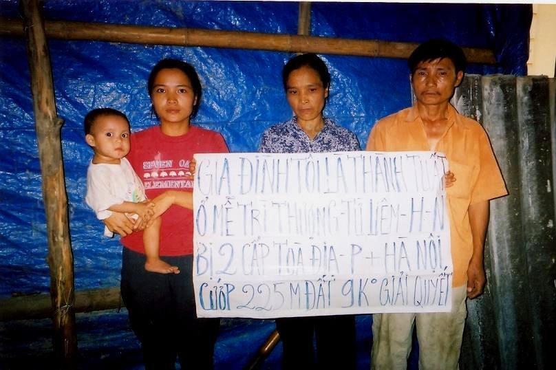 Đă mười năm nay gia đ́nh chúng tôi đă kiên tŕ nhẫn lại cầu cứu kêu oan đơn thư gửi khắp mọi nơi, địa phương và TW thế mà tới nay giải quyết vụ việc về tranh chấp đất đai của nhà tôi trắng đen đă rơ ràng. Tôi đă phân tích rơ trong đơn này mà tới nay vẫn chưa hề được một cấp nào chỉ đạo giải quyết đúng pháp luật, phải chăng gia đ́nh tôi là một cựu quân nhân đă từng tham gia họat động CM, vợ con tôi lại ở nông thôn quá nghèo nên mới bị ngành Ṭa án Hà Nội + địa phương cướp trắng 225m2 đất của gia đ́nh tôi để trả cho những kẻ lắm tiền nhiều của mà đă bị Nhà nước đă quy là địa chủ cường hào, nay ḥan cảnh của gia đ́nh tôi không c̣n lối thoát chỉ c̣n mỗi một điều nếu không được giải quyết ngay th́ tôi sẽ đưa cả gia đ́nh lên Mai Xuân Thưởng để dựng lều ăn ở tại đây v́ người dân quê chúng tôi đă bị đẩy đến bức đường cùng không lối thoát mà do những quan tham ngành Ṭa án cấu kết với địa phương dựng hồ sơ giả nhằm ăn cứơp đất của gia đ́nh tôi.
