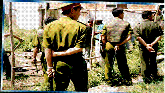 Công an Tân Hiệp Kiên Giang đang cầm roi điện chuẩn bị tấn công ông bà Ua.
