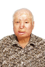 Nhà báo Trần Quang Thành chụp năm 2006, năm 65 tuổi, sau 15 năm bị tạt axit, mù mắt trái, thương tật 81%. Sau 15 lần phẫu thuật để tạo h́nh mặt mũi.(tai nạn xảy ra ngày 4-07-1991). RFA PHOTO