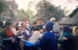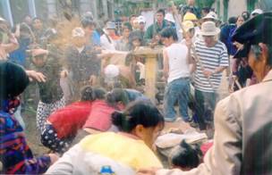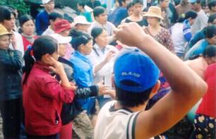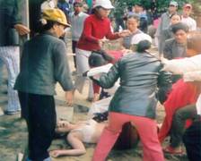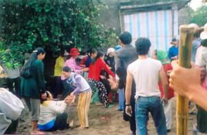 hội Phụ nữ CS đang hành hung cô Nguyễn Thị Thu Hà, bà mẹ Công giáo trẻ nhất