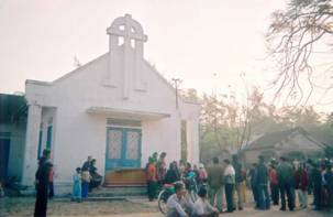 vôi vữa, đứng trong nhà xứ Kế Sung. Cha Nguyễn Hữu Giải đang ngồi trong góc