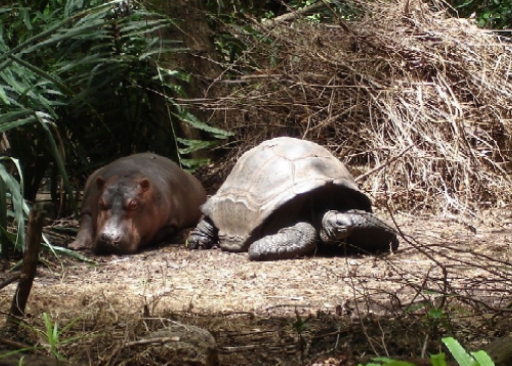 However the weather changed dramatically. It became so hot and humid that Owen had to go into hibernation under shades deep in the bush and the visitors who came around that period left without being able to catch a glimpse of him. Others came back in the evening when it was cooler and Owen came out on the open ground to eat with Mzee.