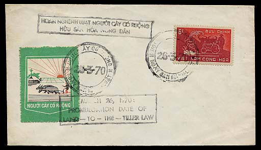 Date of Issued : March 26th, 1970Trong khi ngoài Bắc dùng phương cách đấu tố tàn bạo với danh nghĩa "lấy của người giàu chia cho người nghèo" thì trong Nam dùng chính sách "Người cầy có ruộng" khiến ai cũng vui lòng để cho dân nghèo có đất mà cầy cấy. So sánh thì thấy sự nhân đức / bất nhân thất đức giữa đôi bên khác nhau một trời một vực.