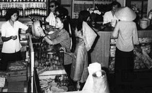 đợi mua chất đốt ở phường 17, quận 5, TP.HCM Một chiếc xe tải lấm đầy bùn đất xịt khói đen chạy ầm ầm qua đường. Thùng xe bịt một tấm bạt lớn đập phần phật. Đi ngược nó là đoàn xe công tác của cán bộ. Và lập tức ông cán bộ cho quay xe đuổi theo. Đến ngang chừng chiếc xe tải, ông rút súng ngắn chĩa lên trời bắn ba phát đạn đanh gịn rợn tóc gáy. Chiếc xe tải sợ hăi dừng lại. Người rượt đuổi là một ông phó chủ tịch UBND tỉnh muốn kiểm tra hàng lậu. Ông Chín Cần (Nguyễn Văn Chính), nguyên bí thư Tỉnh ủy Long An, kể lại câu chuyện mà ông được chứng kiến tại tỉnh ḿnh vào thời kỳ bao cấp với mệnh lệnh cấm buôn bán tự do như thế. Chiếc xe tải đó thật ra giống như bất cứ phương tiện nào. Cứ có dấu hiệu chở được thứ ǵ đó th́ sẽ bị cán bộ kiểm tra. Bởi tất cả mọi thứ hàng hóa không phải của ngành thương mại th́ đều là hàng lậu. Trong khi cuộc sống đang cần càng nhiều hàng th́ nguồn cung từ quốc doanh chỉ đáp ứng được một phần rất nhỏ. Chính v́ vậy mà gạo, thịt, bánh kẹo, bột giặt, áo quần, mũ dép... đều có thể là hàng lậu ở bất cứ nơi nào, lúc nào... Thời đó, người dân nào cũng có thể là “con phe” (dân buôn lậu) nên cán bộ chống buôn lậu rất nhiều. Công an, thuế vụ có thể kiểm tra xét hỏi bất cứ chiếc b́, thúng, sọt, túi... của ai, ở đâu. Ngoài hai lực lượng này, mọi cán bộ nhà nước đều có thể bắt hàng lậu. Ông Chín Cần kể: “Một đoạn đường vài cây số nhưng có tới hơn chục trạm gác kiểm soát hàng hóa. Những trạm gác này thường bắt được những ông cán bộ mặc quần hai lớp để đựng gạo, chị hàng thịt cuốn quanh người những tảng mỡ heo rồi mặc áo trùm bên ngoài. Và đặc biệt nhất là chuyện chở heo trốn qua trạm gác. Một con heo 60kg đă mổ thịt lấy đi ḷng, tiết chở ra chợ bằng cách chằng sau yên xe với tư thế ngồi chạng chân sang hai bên. Áo mưa trùm kín “người” rồi đội cho chú “heo người” một cái nón lấp mặt. Khi qua trạm gác, trời mới tang tảng sáng, người “mẹ” vừa đạp xe vừa quàng tay ra phía sau vỗ về và nhắc nhở “con” đóng giả mẹ chở con đi học. Tuy nhiên cái cảnh “gia đ́nh đầm ấm” ấy sau cũng bị cán bộ phát hiện. Và người dân lại t́m những cách khác để đối phó với mạng lưới chống buôn lậu. Mục đích cuối cùng của người dân chỉ là mong bán được những thứ ḿnh làm ra để lo cho cuộc sống. Mua như cướp Thời ấy, bà Tư Tây, nông dân ấp Ḥa Thạnh, xă Ḥa B́nh Thạnh, huyện Châu Thành (An Giang) có 50 công ruộng. Mỗi năm thu hoạch hơn trăm giạ lúa. Theo qui định của Nhà nước, nhà bà chỉ được giữ lại khoảng 60% (đủ để ăn), số c̣n dư buộc phải bán cho Nhà nước. Giá bán thấp hơn tiền vốn bỏ ra nên nhà bà cũng như tất cả những nông dân trong vùng đều cố gắng t́m cách giấu lúa không cho chính quyền biết. Cuối vụ từng đoàn cán bộ, có khi cả du kích đeo súng vào từng nhà đo bồ (kiểm tra lúa). Ai thừa định mức bị buộc phải bán tại chỗ. Có vụ, nhà bà phải xay thành gạo và giấu trong tủ thờ. Đến khi mở ra th́ chuột ăn hết quá nửa. Có nhà, vợ giấu gạo, cầm ch́a khóa đi vắng, chồng con ở nhà phải nhịn đói... Để giấu lúa qua trạm thời đó bà con thường làm ghe, xuồng có hai đáy, khi vận chuyển th́ đổ trấu lên đáy trên, đựng lúa ở đáy dưới. Trong nhà th́ họ khoét rỗng đống rơm rồi thả lúa vào giữa... Người dân Bến Tre thường đi xuồng xuống Cà Mau mua lúa. Mỗi chuyến đi cả trăm cây số nhưng cũng chỉ có thể mua 1 tạ trở xuống. Dọc tuyến đường độc đạo này có rất nhiều trạm gác. Có lần một bà nông dân bị cán bộ phát hiện chở lúa. Cán bộ bê bao lúa lên th́ bà ta ngất xỉu. “Họ uất ức quá, gia đ́nh đói khổ, quần áo te tua, đi mấy ngày mới tới Cà Mau, cả tuần lễ mới mua được b́ lúa. Cả nhà trông vào đó...”. Chuyện thu mua lúa hay thu mua vải đều giống nhau cả. Năm 1978 giá thành 1m2 vải calicot sản xuất tại xưởng của Công ty Dệt Thành Công là 1,5 đồng. Thế nhưng tất cả lượng sản phẩm có được, công ty đều phải bán cho Nhà nước với giá 1,2đ/m2. Giá thành 1m2 vải dệt theo kiểu oxford hết 10đ nhưng công ty phải bán cho Nhà nước giá 9đ/m2. Giá của hai thứ vải trên nếu bán ở thị trường tự do th́ cao gấp 10-12 lần. Tương tự như vậy, tất cả mọi sản phẩm công ty sản xuất được đều chung t́nh cảnh trên. “Sau bao nhiêu ca lao động cật lực để vượt qua những khó khăn mà Nhà nước không thể hỗ trợ như máy hỏng, nguyên nhiên liệu, vốn... thiếu th́ nhà máy mới ra đời được một lượng hàng ít ỏi. Thế nhưng nh́n cảnh đóng hàng xuất cho nội thương với giá thấp hơn vốn bỏ ra, cán bộ công nhân rơi nước mắt...”. Ông Trần Đức Nguyên, nguyên trưởng Ban nghiên cứu của Thủ tướng, cho rằng cái từ “thu mua” (vừa thu vừa mua) được h́nh thành từ thực tế này. C̣n dân