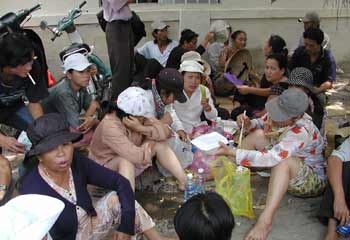 Các bà, các chị gần như kiệt sức sau 4 ngày mòn mỏi đợi tin từ biển khơi.