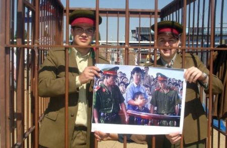 “Sau nữa chúng tôi giới thiệu về thành tích đàn áp hiện nay của Việt Cộng đối với các nhà dân chủ. Gây ấn tượng và xúc động mạnh nhất là bức h́nh trong phiên ṭa ngày 30-03 vừa qua, chụp cảnh linh mục Nguyễn Văn Lư bị bịt miệng và có công an hầm hừ đứng kèm sát hai bên. Quan khách nói họ không thể tưởng tượng những tác phong thời Trung cổ vẫn c̣n vào thế kỷ 21 tại Việt Nam…