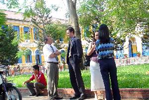 (người ở giữa mặc áo carô tím là Ms Phạm Đ́nh Nhẫn, Chủ Tịch Hiệp Hội)