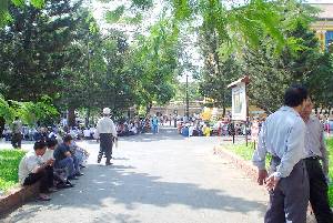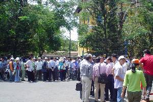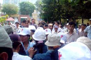 âm thầm lặng lẽ và rất trật tự đến ngay trước hàng rào chắn trước lối vào ṭa
