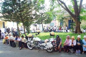 Vừa bước vào cổng ṭa án, tôi đă thấy một ông già ngồi ngay ở lề lối đi gần cổng