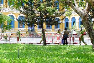 có các cảnh sát cơ động đứng canh gác rất cẩn thận, không biết từ hồi nào (xem